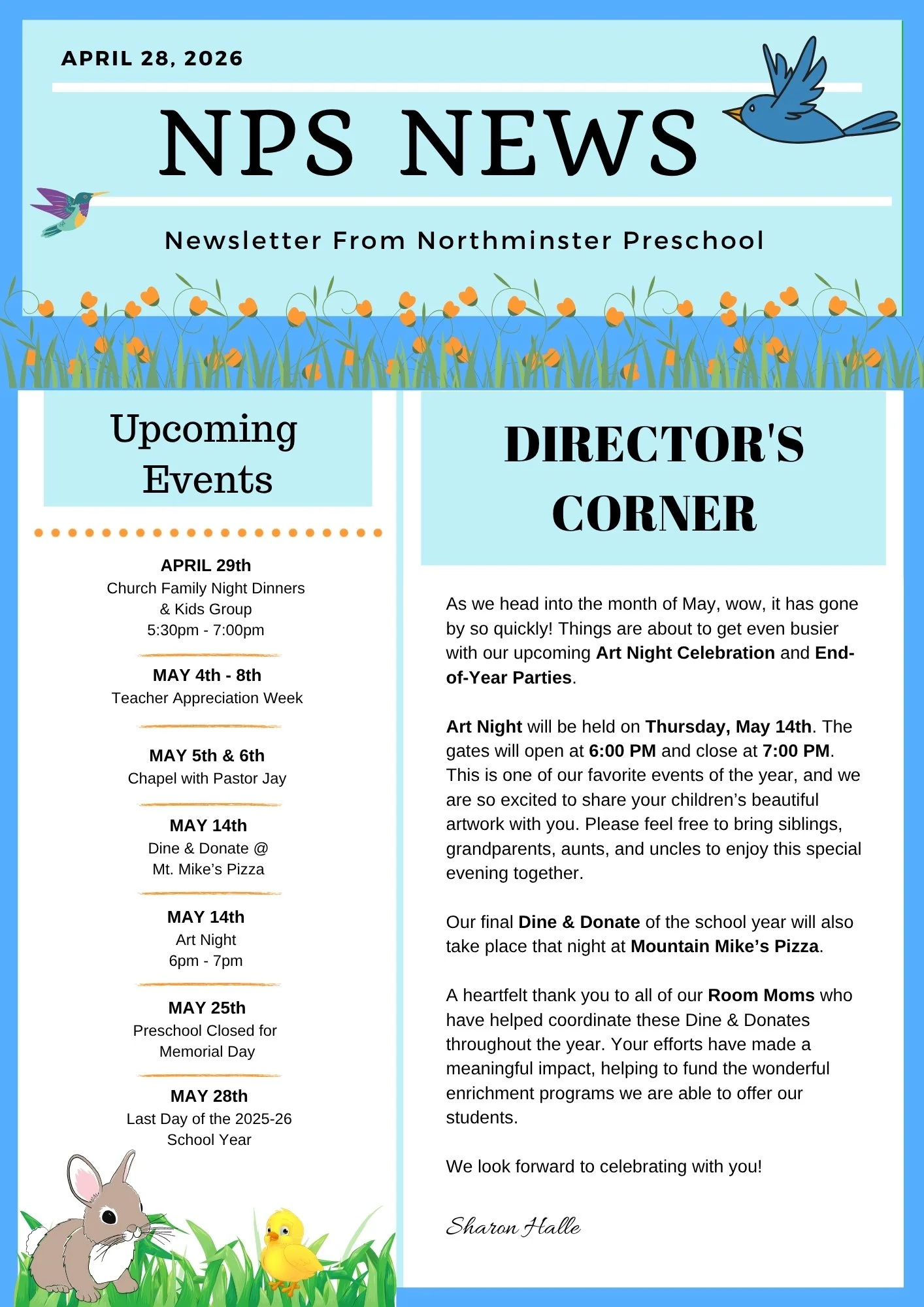 Director's Newsletter - April 28th