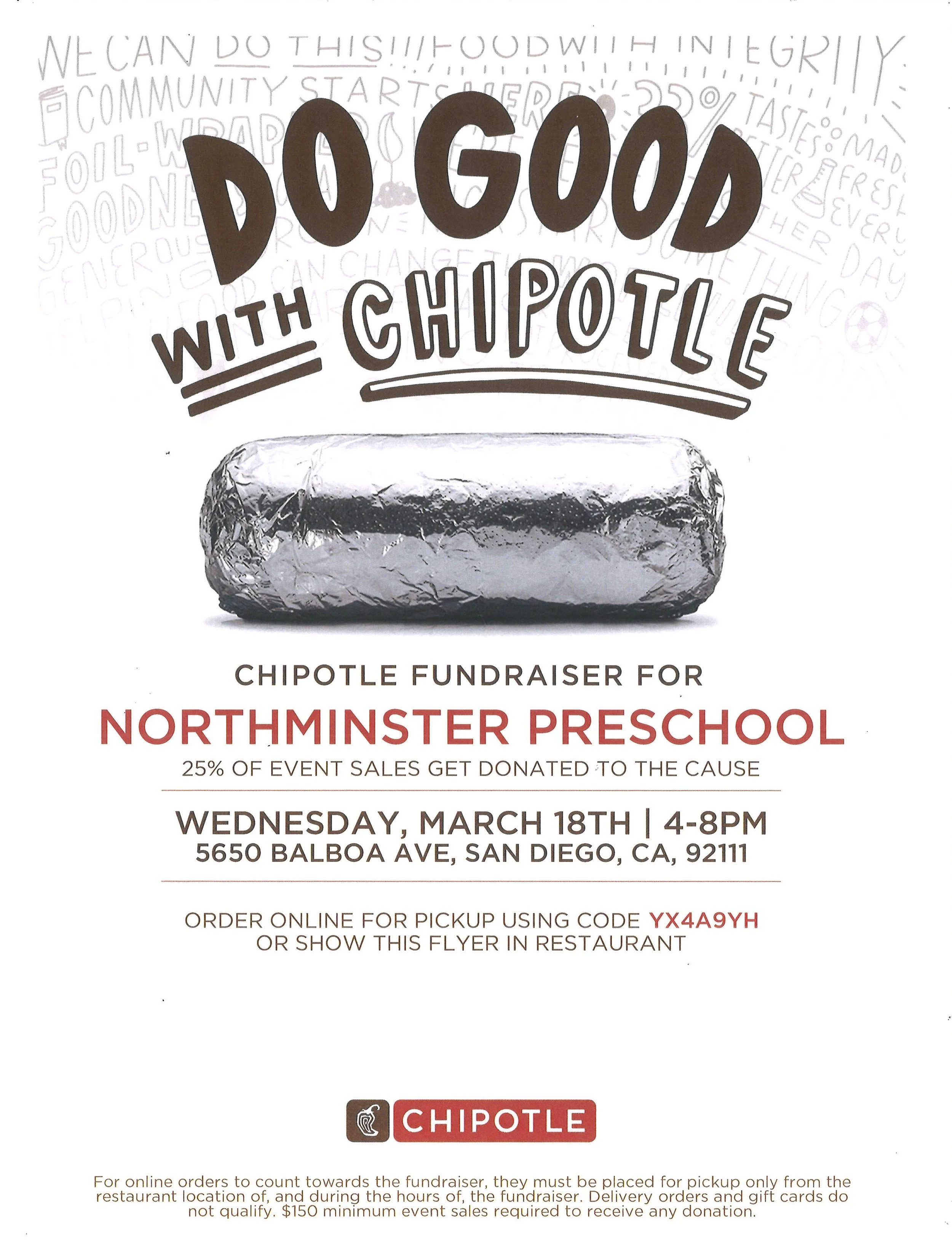 The restaurant will donate 25% of your transaction to our Preschool!!!!